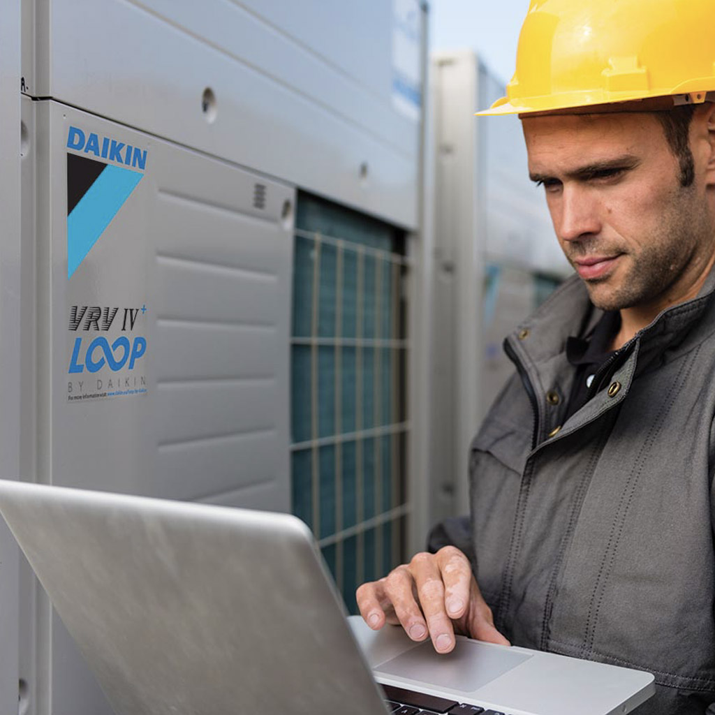 - Keep your system in top condition via the Daikin Cloud Service: 24/7 monitoring for maximum efficiency, extented lifetime and immediate service support thanks to failure prediction